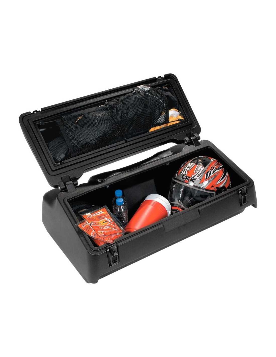 Il baule Kimpex Cargo Deluxe ATV è uno dei bauli più apprezzati e si adatta a tutti gli ATV. Oltre a offrire una grande capacità di stoccaggio, è apprezzato per il suo aspetto e stile. Le guide superiori consentono di mettere gli oggetti sopra il baule con facilità e piacere. È anche possibile riporre gli oggetti nel coperchio che sono tenuti in posizione da una rete.